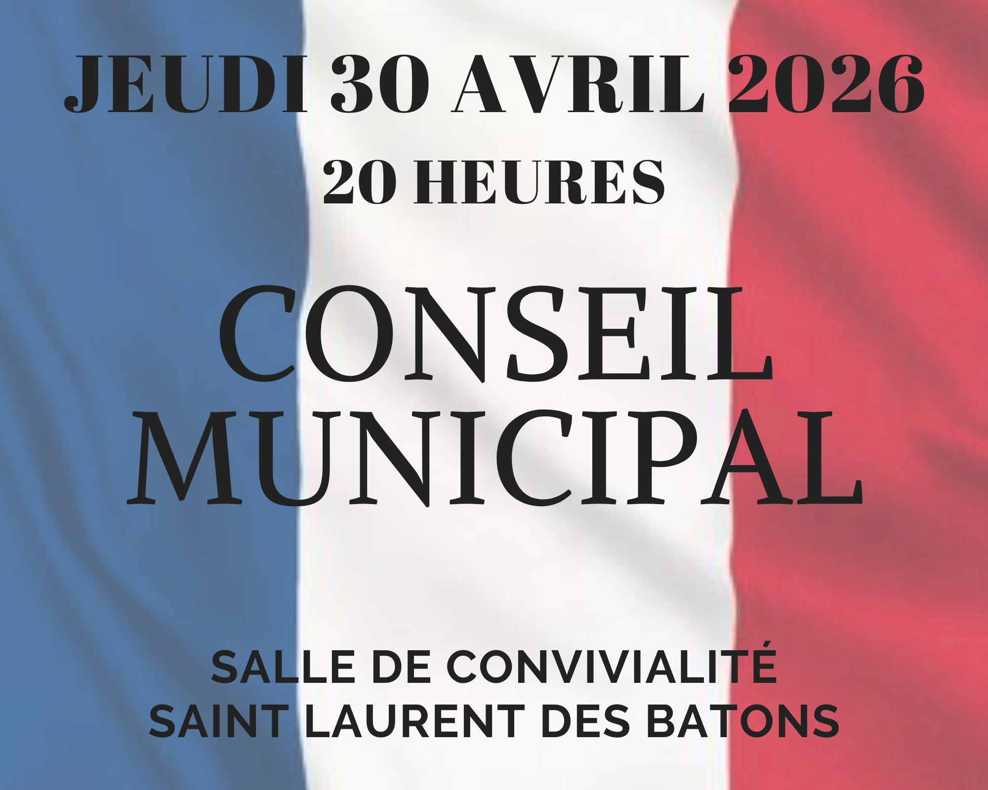 Réunion du Conseil Municipal ce jeudi 30 avril 2026 à 20 heures à Saint Laurent des Bâtons.