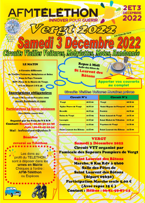 A l'occasion du Téléthon 2022, Saint-Laurent des Bâtons accueillera une marche ainsi qu'un repas.