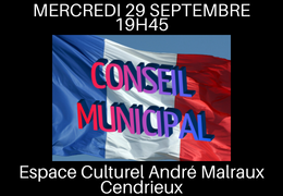 Réunion du Conseil Municipal le mercredi 29 septembre 2021, à 19h45 à l'espace culturel André Malraux (Cendrieux).
