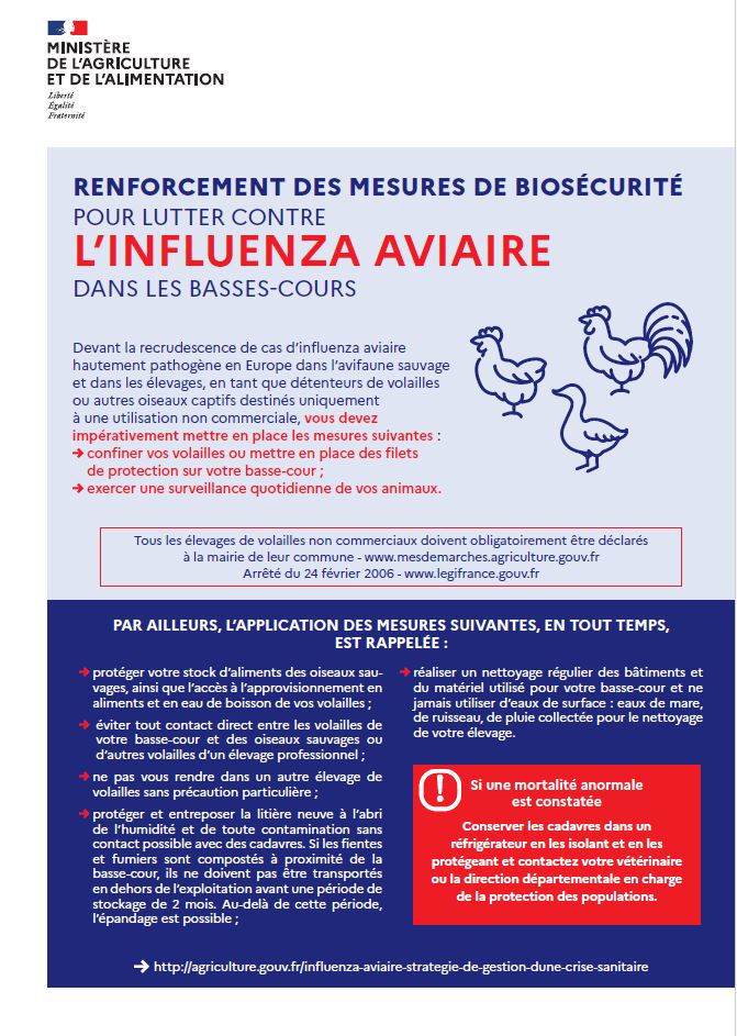 Risque potentiel de contamination IAHP, notamment en basse-cour.
