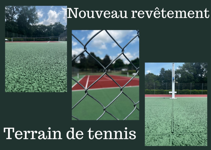 Terrain de tennis Le sol du terrain de tennis a été totalement refait. Le terrain ne sera pas praticable quelques jours.