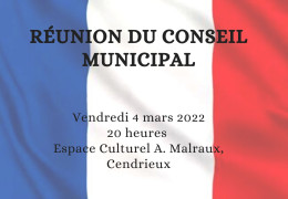 Le conseil municipal se tiendra le vendredi 4 mars 2022 à 20h00 à l'espace culturel André Malraux de Cendrieux.