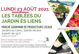LES TABLÉES DU JARDIN ES LIENS MARCHÉ GOURMAND DE PRODUCTEURS LOCAUX LUNDI 23 AOÛT À PARTIR DE 19H00 SUR PRÉSENTATION DU PASS SANITAIRE