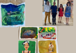 Marie-Cécile Marques, artiste en résidence à Sainte-Alvère expose à la halle jusqu'à demain lundi 23 août. Le vernissage a eu lieu samedi 21 en présence de Philippe Ducène Maire de Val de Louyre et Caudeau, Marie-Christine Bencharel Maire déléguée de Sainte-Alvère et Fernand Ventura Directeur des