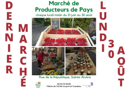 Ne manquez pas le dernier marché des Producteurs de Pays lundi 30 août Rue de la République !!!