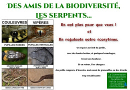 La Commission Développement Durable communique : C'est l'été, attention aux serpents, mais surtout ne faisons pas de mal à ces amis de la biodiversité. 2 espèces vont se retrouver dans notre région : la couleuvre et la vipère. Quelques conseils avant de partir vous balader : - porter des chaussures