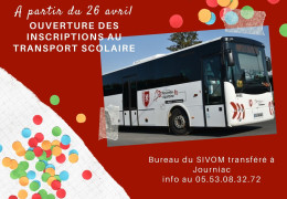 Les inscriptions en ligne pour les transports scolaires (1ères demande ou renouvellement) sont ouvertes à partir du lundi 26 avril 2021 : https://scolaire24.transports.nouvelle-aquitaine.fr/crnaq_24/usager/ind… Pour les élèves concernés par le Collège du Bugue vous pouvez également vous rendre