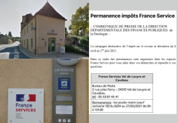 - COMMUNIQUE DE PRESSE DE LA DIRECTION DEPARTEMENTALE DES FINANCES PUBLIQUES de la Dordogne – La campagne déclarative de l’impôt sur le revenu se déroulera du 8 avril au 1 er juin 2021. Dans ce cadre des permanences sont organisées dans les espaces France Service pour vous aider dans vos démarches