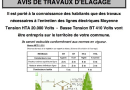A partir du 13 avril, les services d'Enedis interviendront pour des travaux d'élagage autour des lignes à moyennes tensions sur Sainte-Alvère, afin de garantir la zone de sécurité des 3 mètres. Plus d'informations : information avis de travaux - Enedis avis de travaux - Enedis