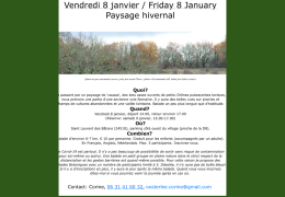 Balade Botanique Vendredi 8 Janvier 14h00 à Saint-Laurent des Bâtons Balade d'environ 6-7 kilomètres Rendez-vous parking côté ouest du village tarif 10 euros par personne Maximum 5 participants Inscription : Corine 06.31.41.60.32 oosterlee.corine@gmail.Com