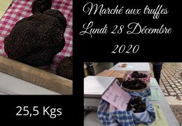 Pour ce marché aux truffes d'après fêtes, ce sont près de 30 kilos de truffes qui ont été proposés à la vente entre 600 et 850 euros le kilo. Un marché très actif, des truffes à maturité avec un bon parfum. Rendez-vous lundi prochain....