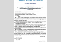 INFORMATION: Veuillez trouver ci-joint le décret ministériel portant réglementation des déplacements dans le cadre de la lutte contre la propagation du virus covid-19. Ci-dessous le lien du texte officiel et le lien pour télécharger vos attestations de déplacements dérogatoires. https://www