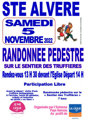 A l'occasion d'Octobre Rose, une randonnée pédestre est organisée le samedi 5 novembre 2022 au départ de Sainte-Alvère sur le sentier des truffières.